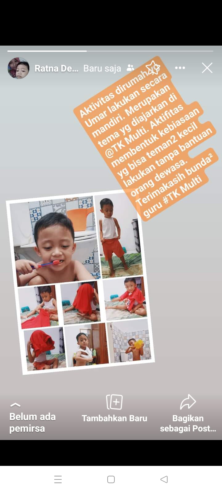 daftar di TK Multi. Alhamdulillah dari Januari Sakha sekolah sampai sekarang, banyak kemajuannya, Sekarang Sakha